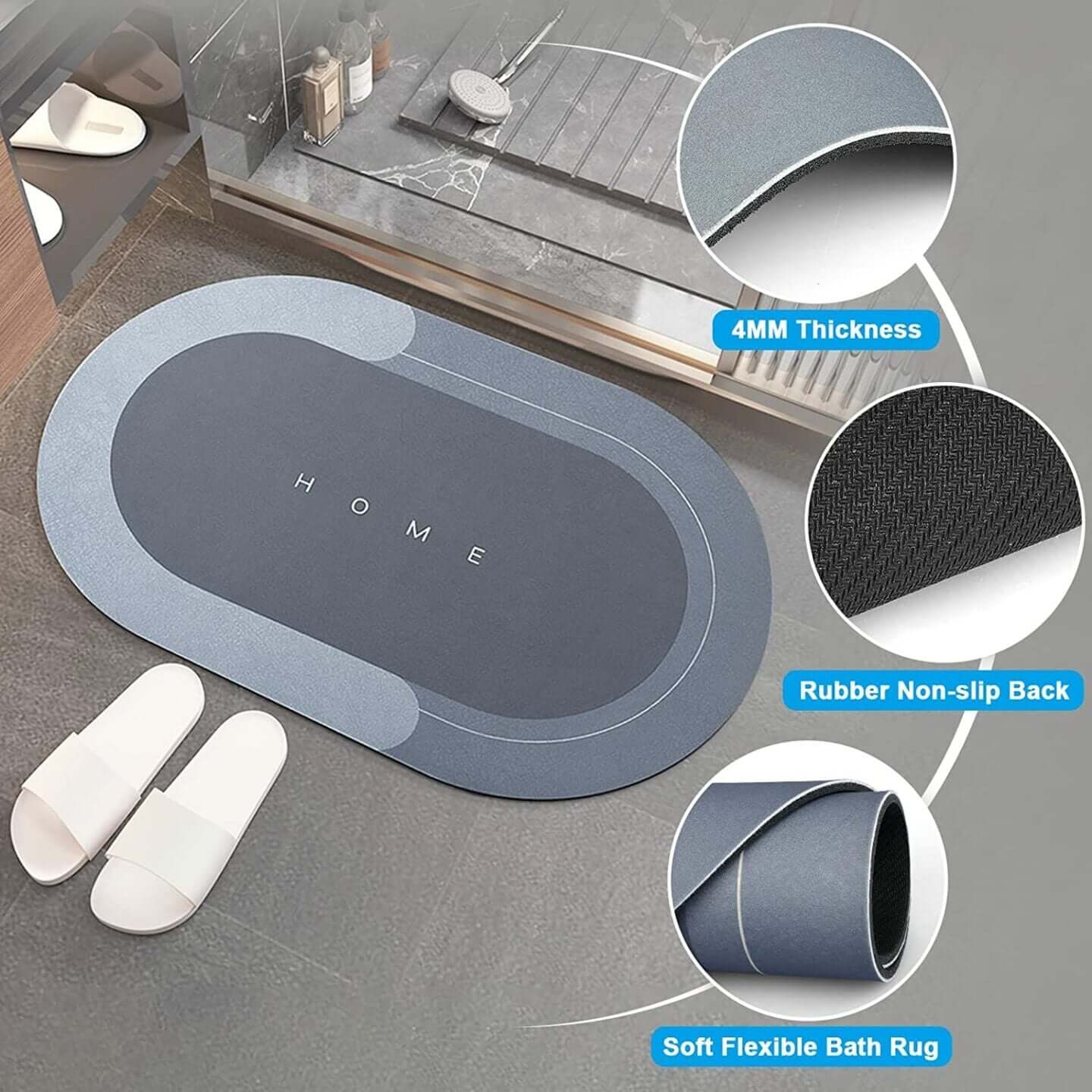 Innovative Absorbent Bath Mat- Advanced nanotechnology and up to 90% porosity surface allow water to penetrate fast. The water absorption is up to 2-4 times its weight.